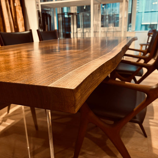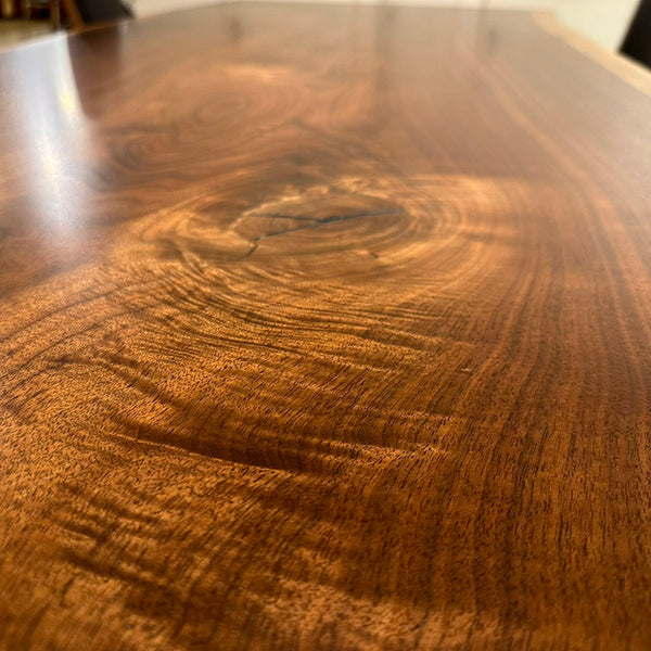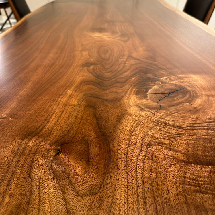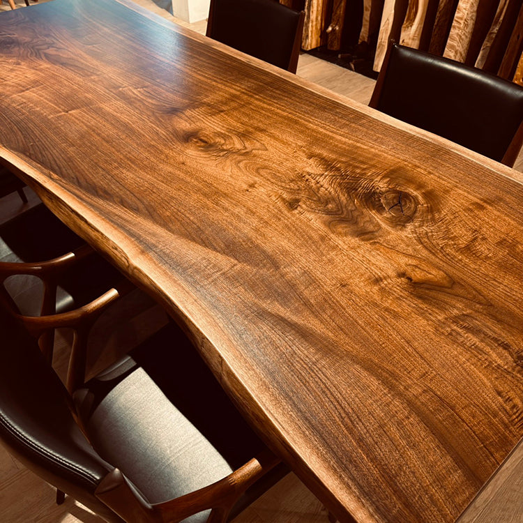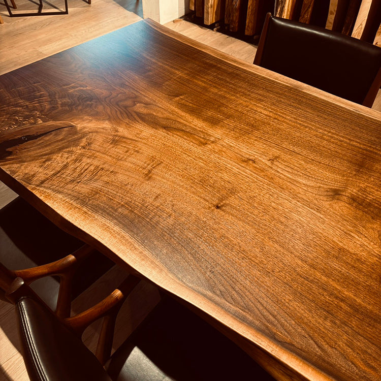 木には人と同じように個性があります。樹種や産地、樹齢はもちろん、同じ丸太から製材した一枚板でも同じものはひとつとしてありません。同じ名前の木でも色の明るいもの、暗いもの、節があるもの、傷があるものなど様々です。それは木が長い年月を過ごしてきた証であり、木が持つ個性です。だからこそ一枚板は‘世界にひとつのモノ’になるのです。