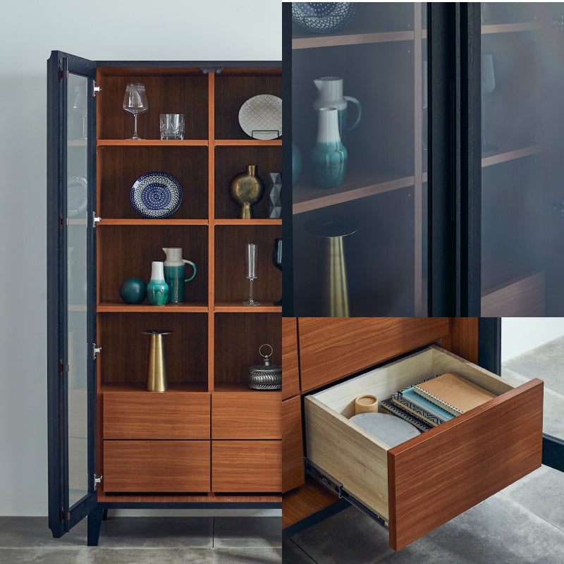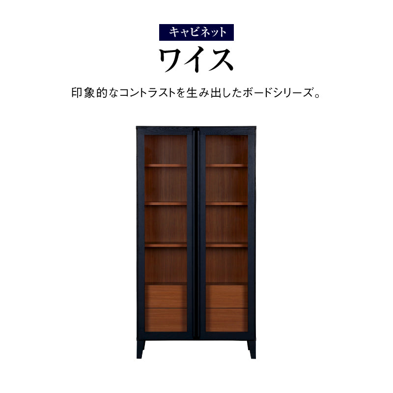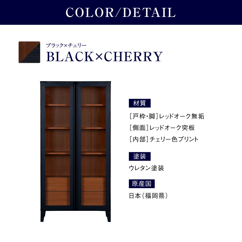 商品情報 | 本体外側と、内部のカラーを変えることで、印象的なコントラストを生み出しました。内部のチェリー色がヴィンテージな雰囲気を盛り上げます。外側はオークをブラック塗装し、木目を活かした仕様です。 |