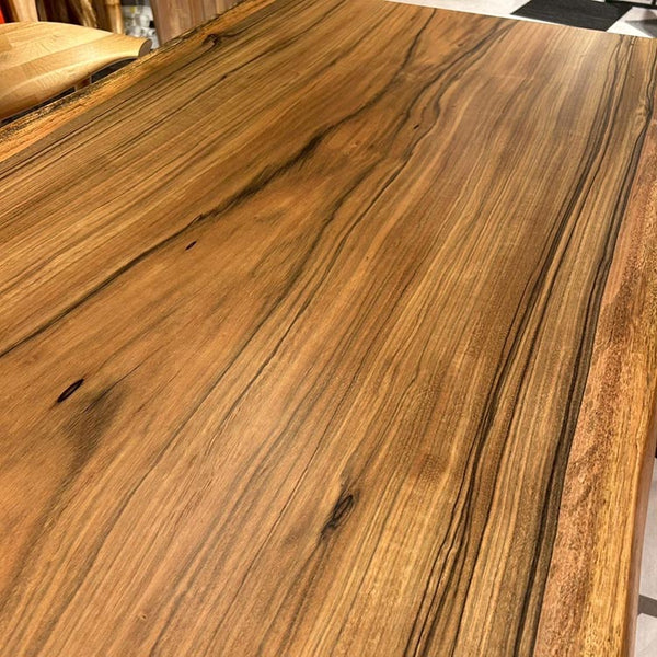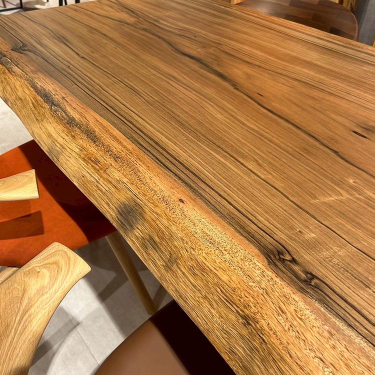 木には人と同じように個性があります。樹種や産地、樹齢はもちろん、同じ丸太から製材した一枚板でも同じものはひとつとしてありません。同じ名前の木でも色の明るいもの、暗いもの、節があるもの、傷があるものなど様々です。それは木が長い年月を過ごしてきた証であり、木が持つ個性です。だからこそ一枚板は‘世界にひとつのモノ’になるのです。