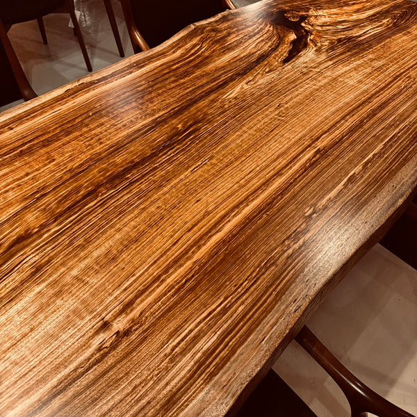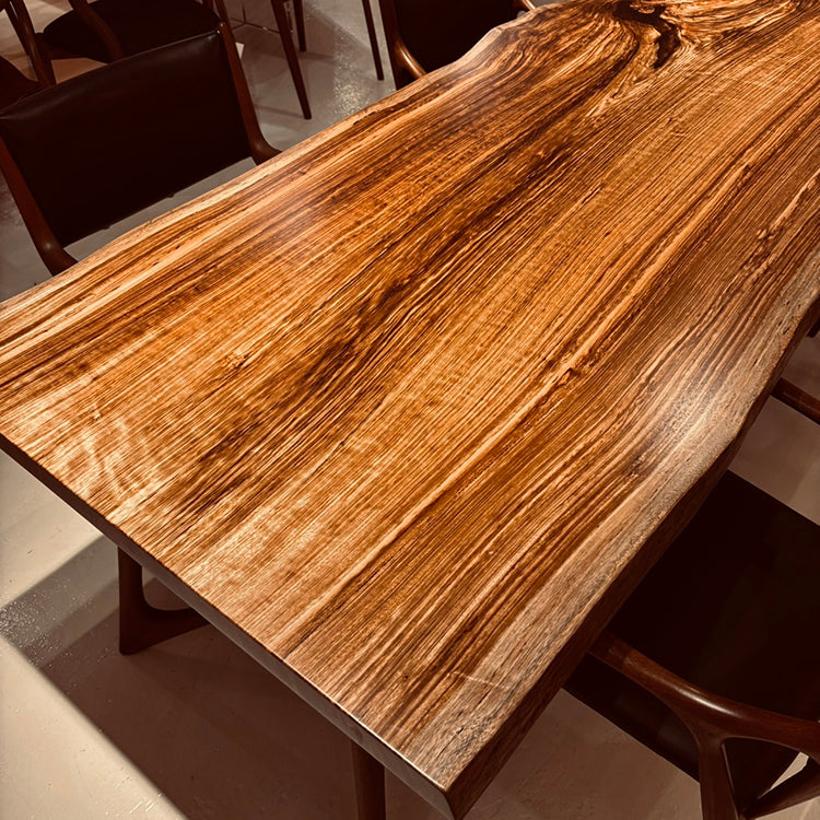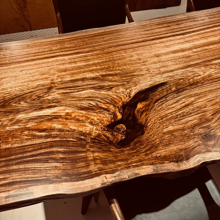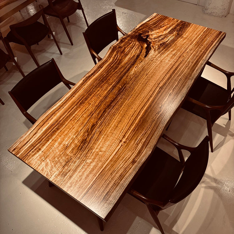 木には人と同じように個性があります。樹種や産地、樹齢はもちろん、同じ丸太から製材した一枚板でも同じものはひとつとしてありません。同じ名前の木でも色の明るいもの、暗いもの、節があるもの、傷があるものなど様々です。それは木が長い年月を過ごしてきた証であり、木が持つ個性です。だからこそ一枚板は‘世界にひとつのモノ’になるのです。