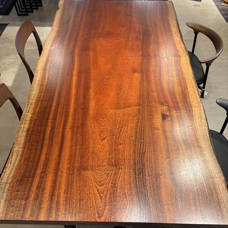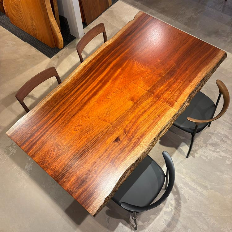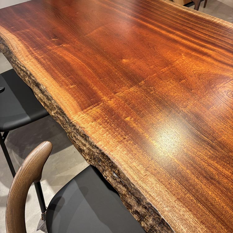 木には人と同じように個性があります。樹種や産地、樹齢はもちろん、同じ丸太から製材した一枚板でも同じものはひとつとしてありません。同じ名前の木でも色の明るいもの、暗いもの、節があるもの、傷があるものなど様々です。それは木が長い年月を過ごしてきた証であり、木が持つ個性です。だからこそ一枚板は‘世界にひとつのモノ’になるのです。