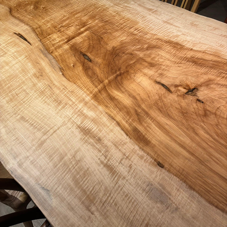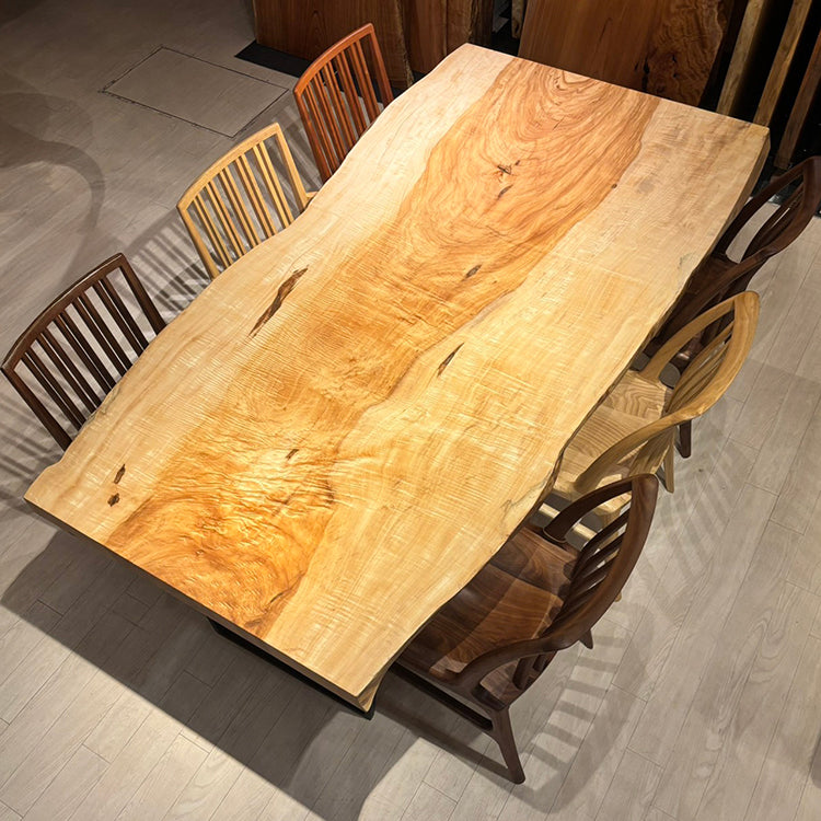 木には人と同じように個性があります。樹種や産地、樹齢はもちろん、同じ丸太から製材した一枚板でも同じものはひとつとしてありません。同じ名前の木でも色の明るいもの、暗いもの、節があるもの、傷があるものなど様々です。それは木が長い年月を過ごしてきた証であり、木が持つ個性です。だからこそ一枚板は‘世界にひとつのモノ’になるのです。
