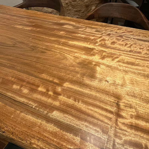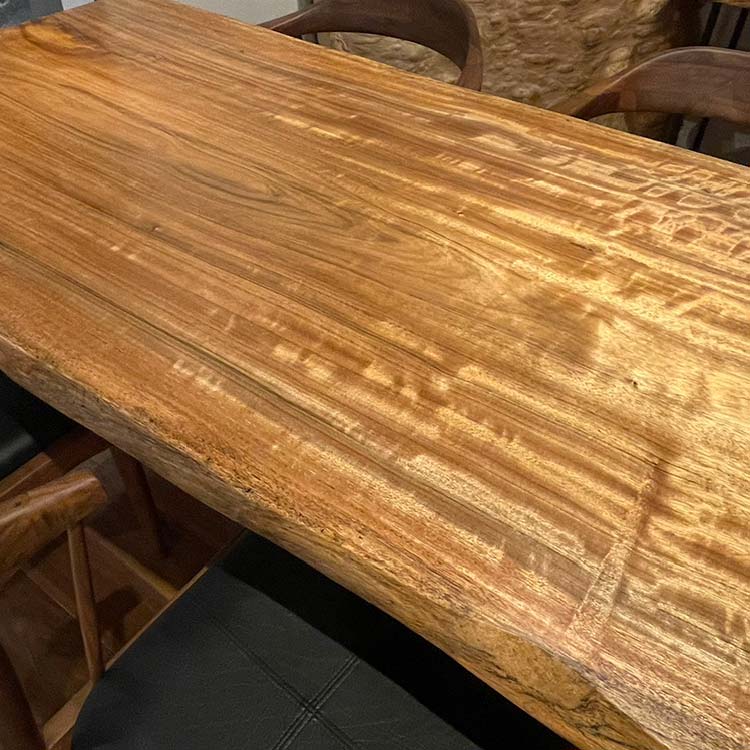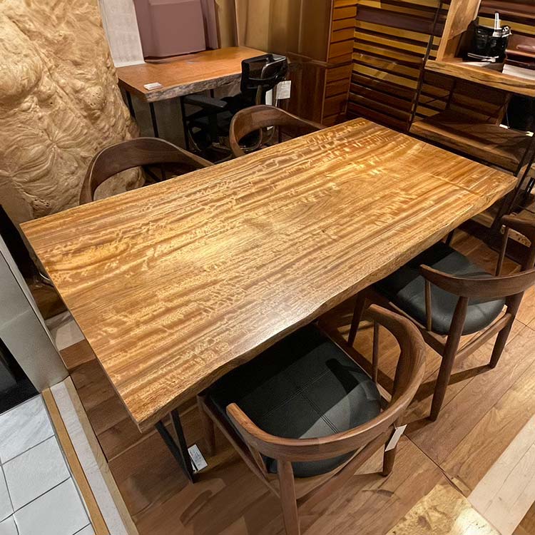 木には人と同じように個性があります。樹種や産地、樹齢はもちろん、同じ丸太から製材した一枚板でも同じものはひとつとしてありません。同じ名前の木でも色の明るいもの、暗いもの、節があるもの、傷があるものなど様々です。それは木が長い年月を過ごしてきた証であり、木が持つ個性です。だからこそ一枚板は‘世界にひとつのモノ’になるのです。