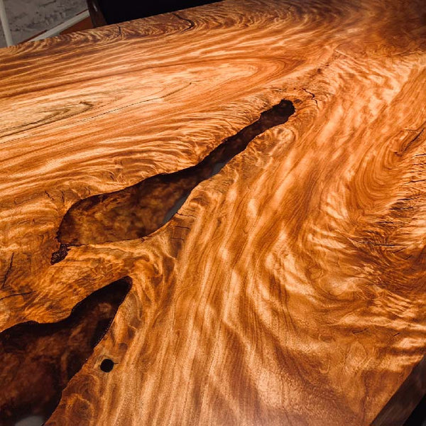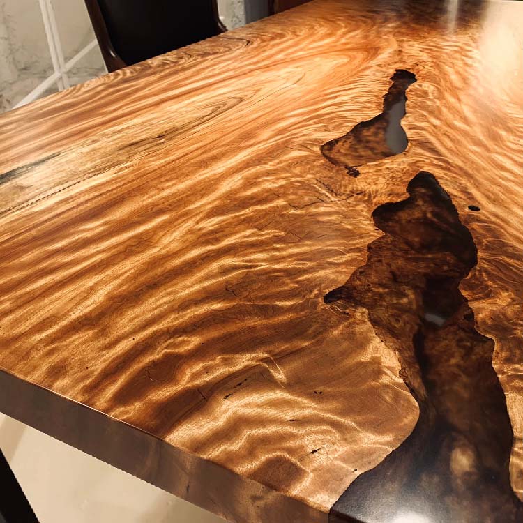 木には人と同じように個性があります。樹種や産地、樹齢はもちろん、同じ丸太から製材した一枚板でも同じものはひとつとしてありません。同じ名前の木でも色の明るいもの、暗いもの、節があるもの、傷があるものなど様々です。それは木が長い年月を過ごしてきた証であり、木が持つ個性です。だからこそ一枚板は‘世界にひとつのモノ’になるのです。