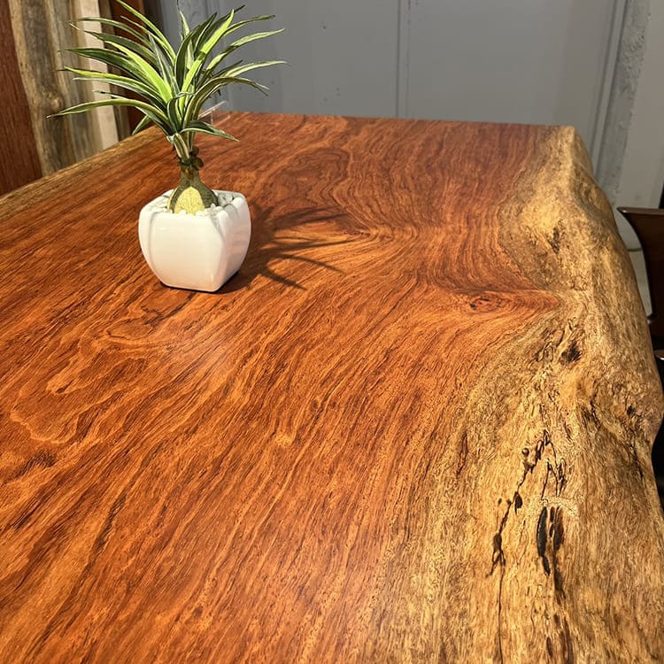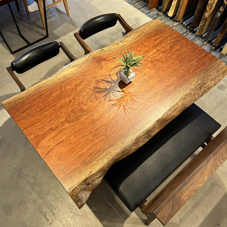 木には人と同じように個性があります。樹種や産地、樹齢はもちろん、同じ丸太から製材した一枚板でも同じものはひとつとしてありません。同じ名前の木でも色の明るいもの、暗いもの、節があるもの、傷があるものなど様々です。それは木が長い年月を過ごしてきた証であり、木が持つ個性です。だからこそ一枚板は‘世界にひとつのモノ’になるのです。