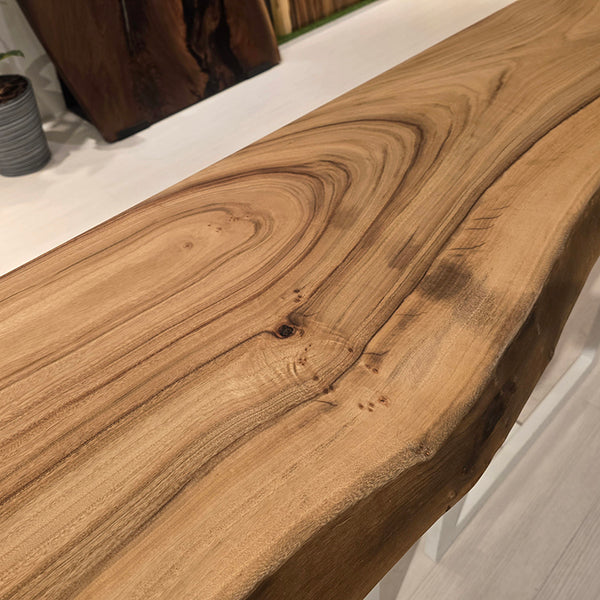 木には人と同じように個性があります。樹種や産地、樹齢はもちろん、同じ丸太から製材した一枚板でも同じものはひとつとしてありません。同じ名前の木でも色の明るいもの、暗いもの、節があるもの、傷があるものなど様々です。それは木が長い年月を過ごしてきた証であり、木が持つ個性です。だからこそ一枚板は‘世界にひとつのモノ’になるのです。