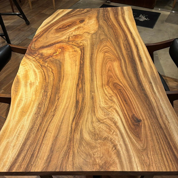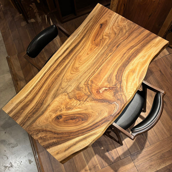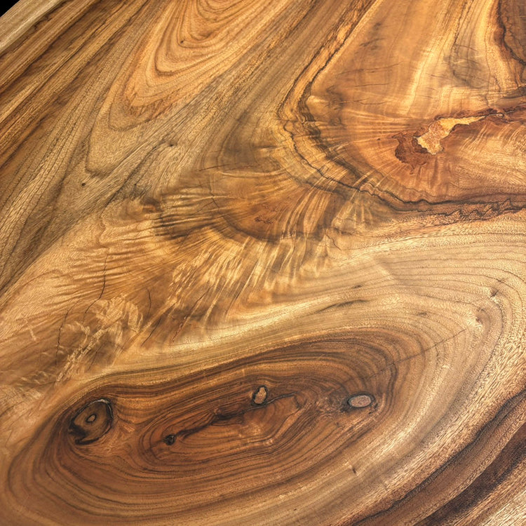 木には人と同じように個性があります。樹種や産地、樹齢はもちろん、同じ丸太から製材した一枚板でも同じものはひとつとしてありません。同じ名前の木でも色の明るいもの、暗いもの、節があるもの、傷があるものなど様々です。それは木が長い年月を過ごしてきた証であり、木が持つ個性です。だからこそ一枚板は‘世界にひとつのモノ’になるのです。