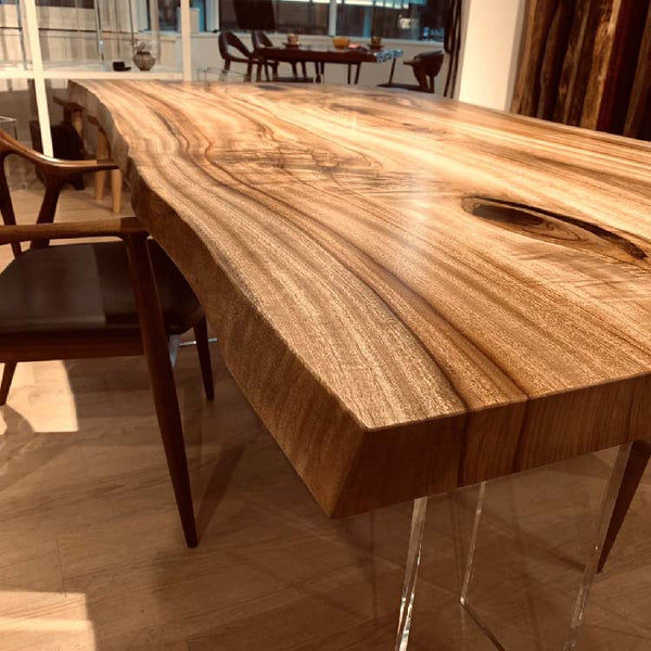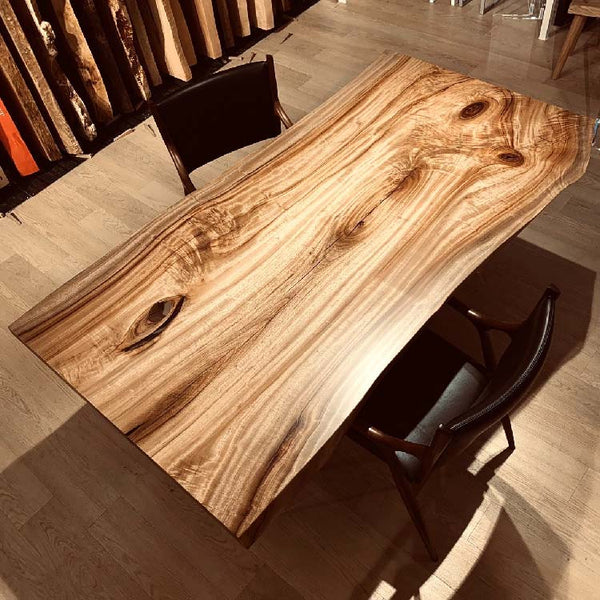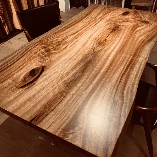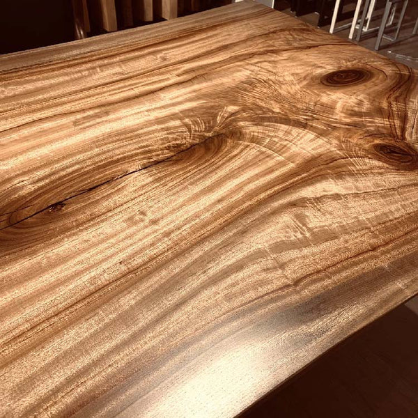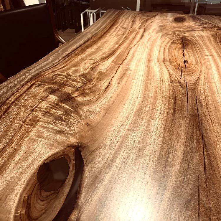 木には人と同じように個性があります。樹種や産地、樹齢はもちろん、同じ丸太から製材した一枚板でも同じものはひとつとしてありません。同じ名前の木でも色の明るいもの、暗いもの、節があるもの、傷があるものなど様々です。それは木が長い年月を過ごしてきた証であり、木が持つ個性です。だからこそ一枚板は‘世界にひとつのモノ’になるのです。