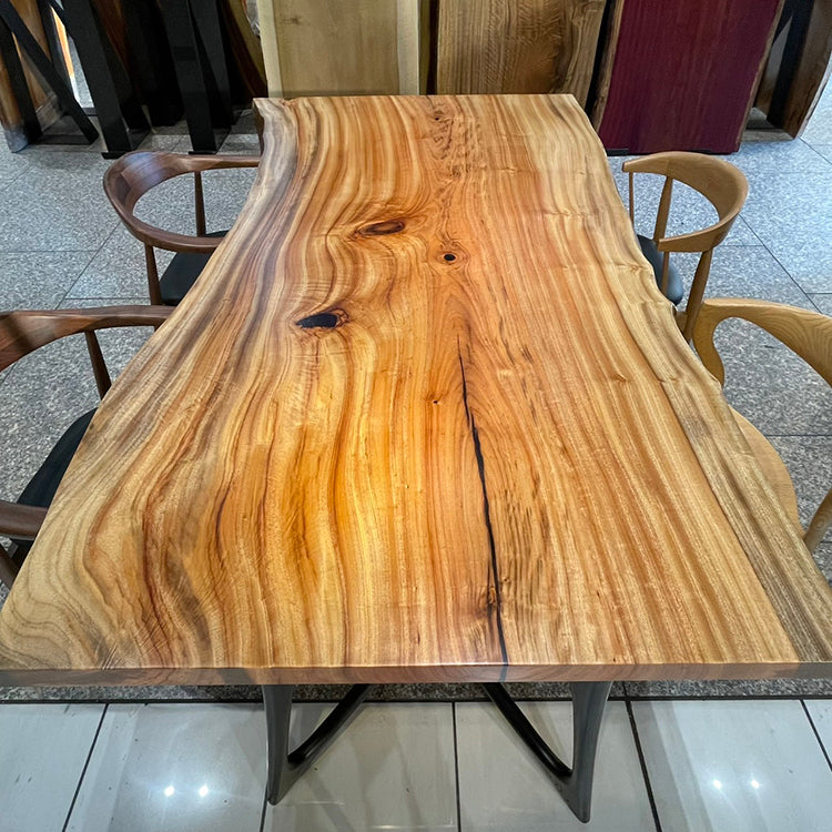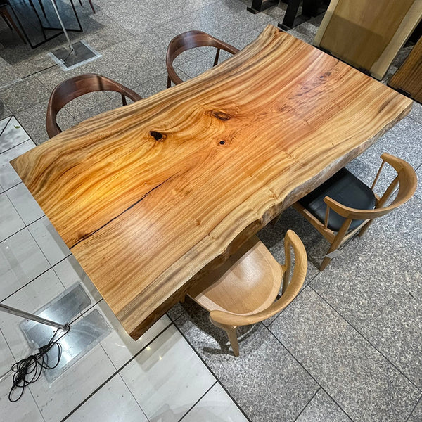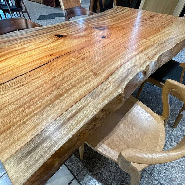 木には人と同じように個性があります。樹種や産地、樹齢はもちろん、同じ丸太から製材した一枚板でも同じものはひとつとしてありません。同じ名前の木でも色の明るいもの、暗いもの、節があるもの、傷があるものなど様々です。それは木が長い年月を過ごしてきた証であり、木が持つ個性です。だからこそ一枚板は‘世界にひとつのモノ’になるのです。
