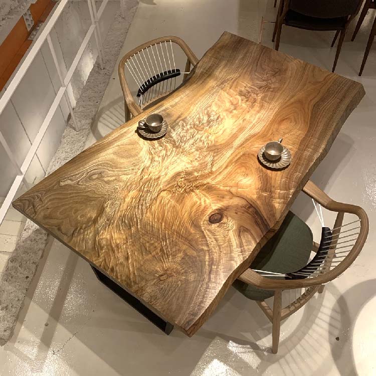 木には人と同じように個性があります。樹種や産地、樹齢はもちろん、同じ丸太から製材した一枚板でも同じものはひとつとしてありません。同じ名前の木でも色の明るいもの、暗いもの、節があるもの、傷があるものなど様々です。それは木が長い年月を過ごしてきた証であり、木が持つ個性です。だからこそ一枚板は‘世界にひとつのモノ’になるのです。