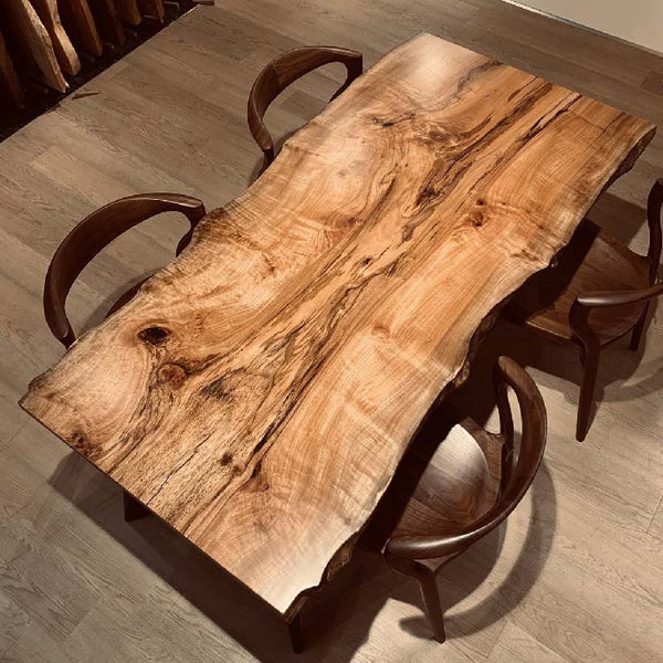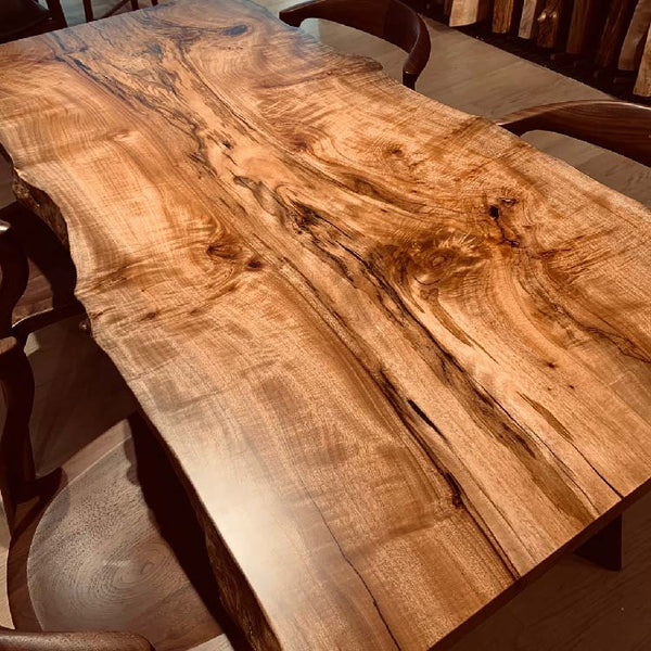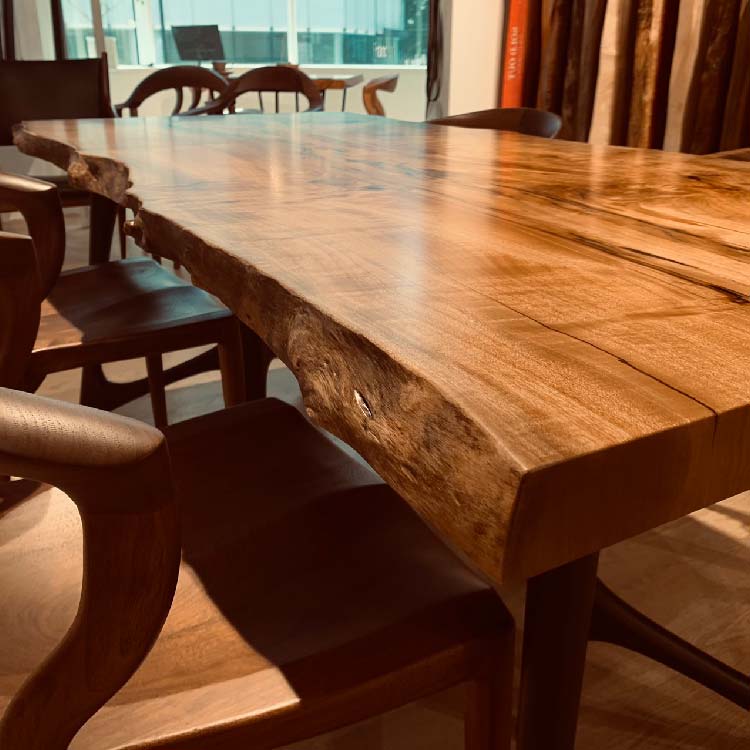 木には人と同じように個性があります。樹種や産地、樹齢はもちろん、同じ丸太から製材した一枚板でも同じものはひとつとしてありません。同じ名前の木でも色の明るいもの、暗いもの、節があるもの、傷があるものなど様々です。それは木が長い年月を過ごしてきた証であり、木が持つ個性です。だからこそ一枚板は‘世界にひとつのモノ’になるのです。