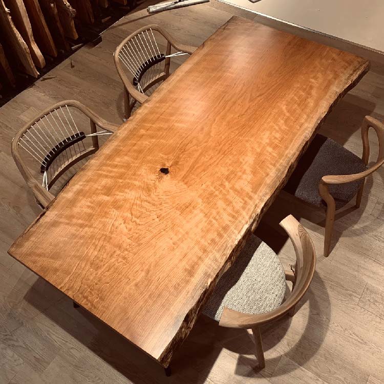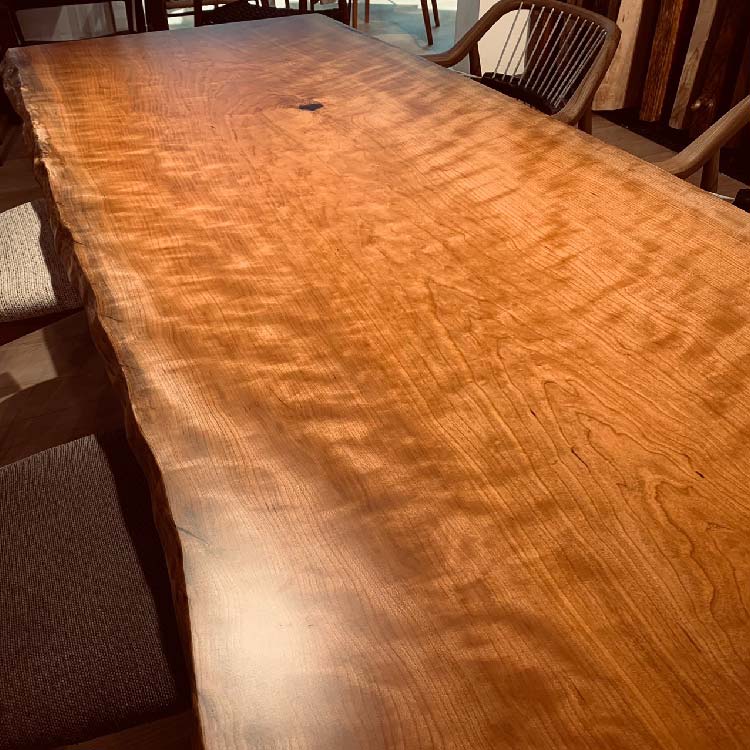 木には人と同じように個性があります。樹種や産地、樹齢はもちろん、同じ丸太から製材した一枚板でも同じものはひとつとしてありません。同じ名前の木でも色の明るいもの、暗いもの、節があるもの、傷があるものなど様々です。それは木が長い年月を過ごしてきた証であり、木が持つ個性です。だからこそ一枚板は‘世界にひとつのモノ’になるのです。