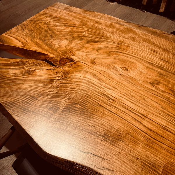 木には人と同じように個性があります。樹種や産地、樹齢はもちろん、同じ丸太から製材した一枚板でも同じものはひとつとしてありません。同じ名前の木でも色の明るいもの、暗いもの、節があるもの、傷があるものなど様々です。それは木が長い年月を過ごしてきた証であり、木が持つ個性です。だからこそ一枚板は‘世界にひとつのモノ’になるのです。