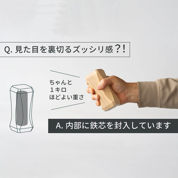 リビングのテーブルやオフィスのデスクトップなど手近に置くことに最適化したウッドダンベルです。