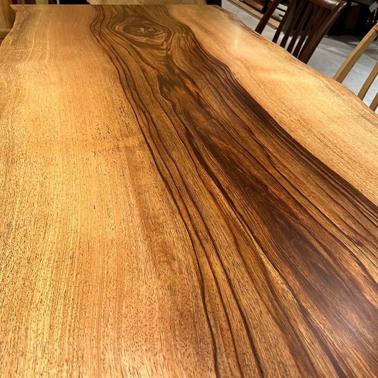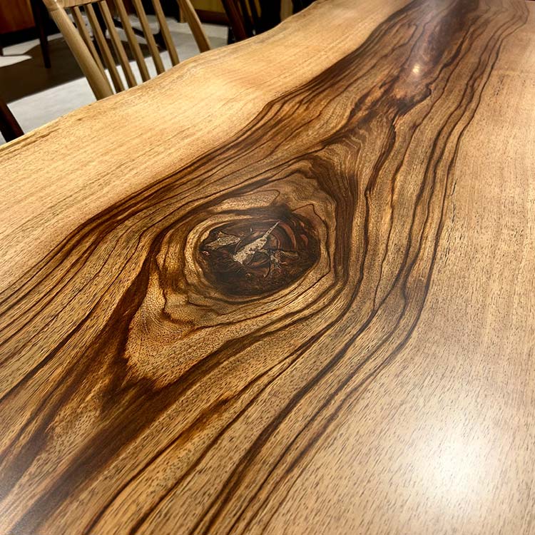 木には人と同じように個性があります。樹種や産地、樹齢はもちろん、同じ丸太から製材した一枚板でも同じものはひとつとしてありません。同じ名前の木でも色の明るいもの、暗いもの、節があるもの、傷があるものなど様々です。それは木が長い年月を過ごしてきた証であり、木が持つ個性です。だからこそ一枚板は‘世界にひとつのモノ’になるのです。