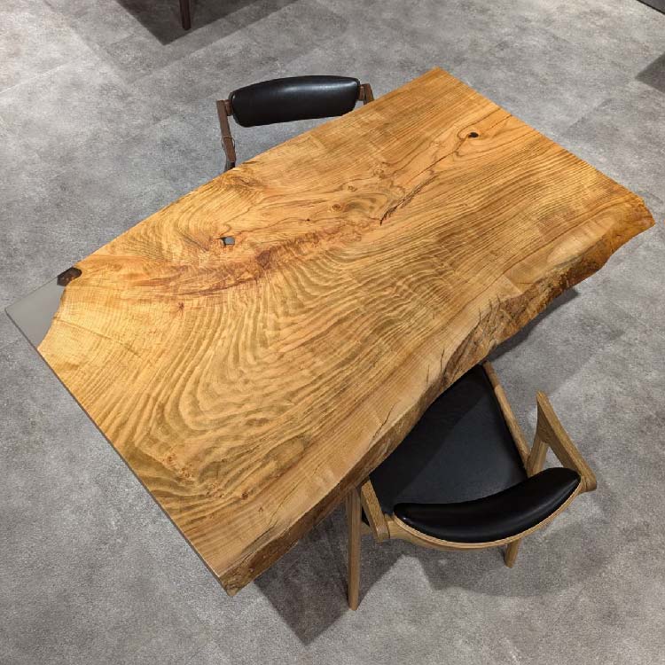 木には人と同じように個性があります。樹種や産地、樹齢はもちろん、同じ丸太から製材した一枚板でも同じものはひとつとしてありません。同じ名前の木でも色の明るいもの、暗いもの、節があるもの、傷があるものなど様々です。それは木が長い年月を過ごしてきた証であり、木が持つ個性です。だからこそ一枚板は‘世界にひとつのモノ’になるのです。