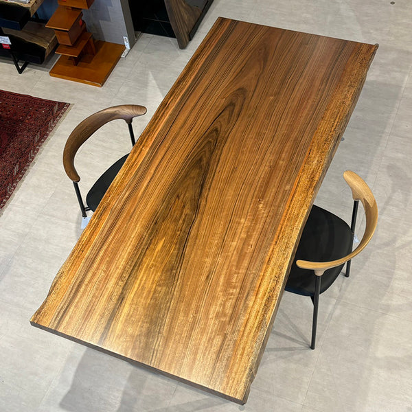 木には人と同じように個性があります。樹種や産地、樹齢はもちろん、同じ丸太から製材した一枚板でも同じものはひとつとしてありません。同じ名前の木でも色の明るいもの、暗いもの、節があるもの、傷があるものなど様々です。それは木が長い年月を過ごしてきた証であり、木が持つ個性です。だからこそ一枚板は‘世界にひとつのモノ’になるのです。