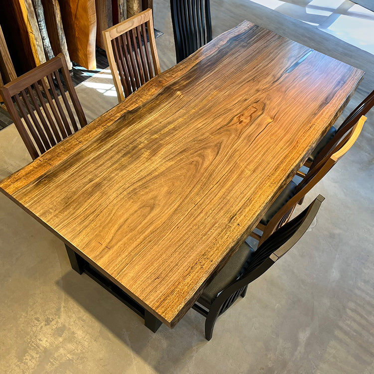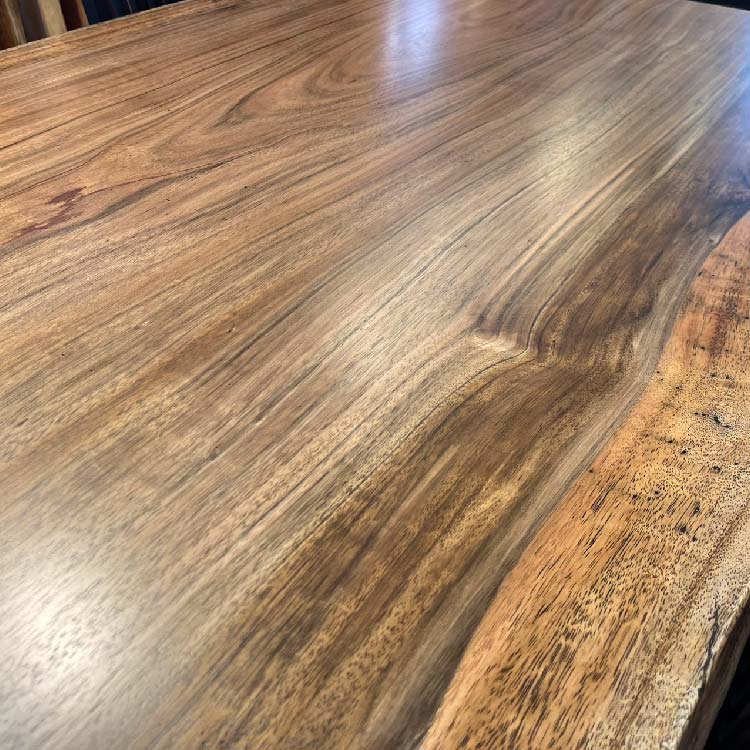 木には人と同じように個性があります。樹種や産地、樹齢はもちろん、同じ丸太から製材した一枚板でも同じものはひとつとしてありません。同じ名前の木でも色の明るいもの、暗いもの、節があるもの、傷があるものなど様々です。それは木が長い年月を過ごしてきた証であり、木が持つ個性です。だからこそ一枚板は‘世界にひとつのモノ’になるのです。