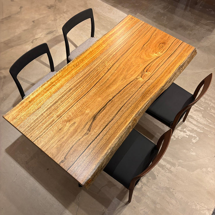 木には人と同じように個性があります。樹種や産地、樹齢はもちろん、同じ丸太から製材した一枚板でも同じものはひとつとしてありません。同じ名前の木でも色の明るいもの、暗いもの、節があるもの、傷があるものなど様々です。それは木が長い年月を過ごしてきた証であり、木が持つ個性です。だからこそ一枚板は‘世界にひとつのモノ’になるのです。