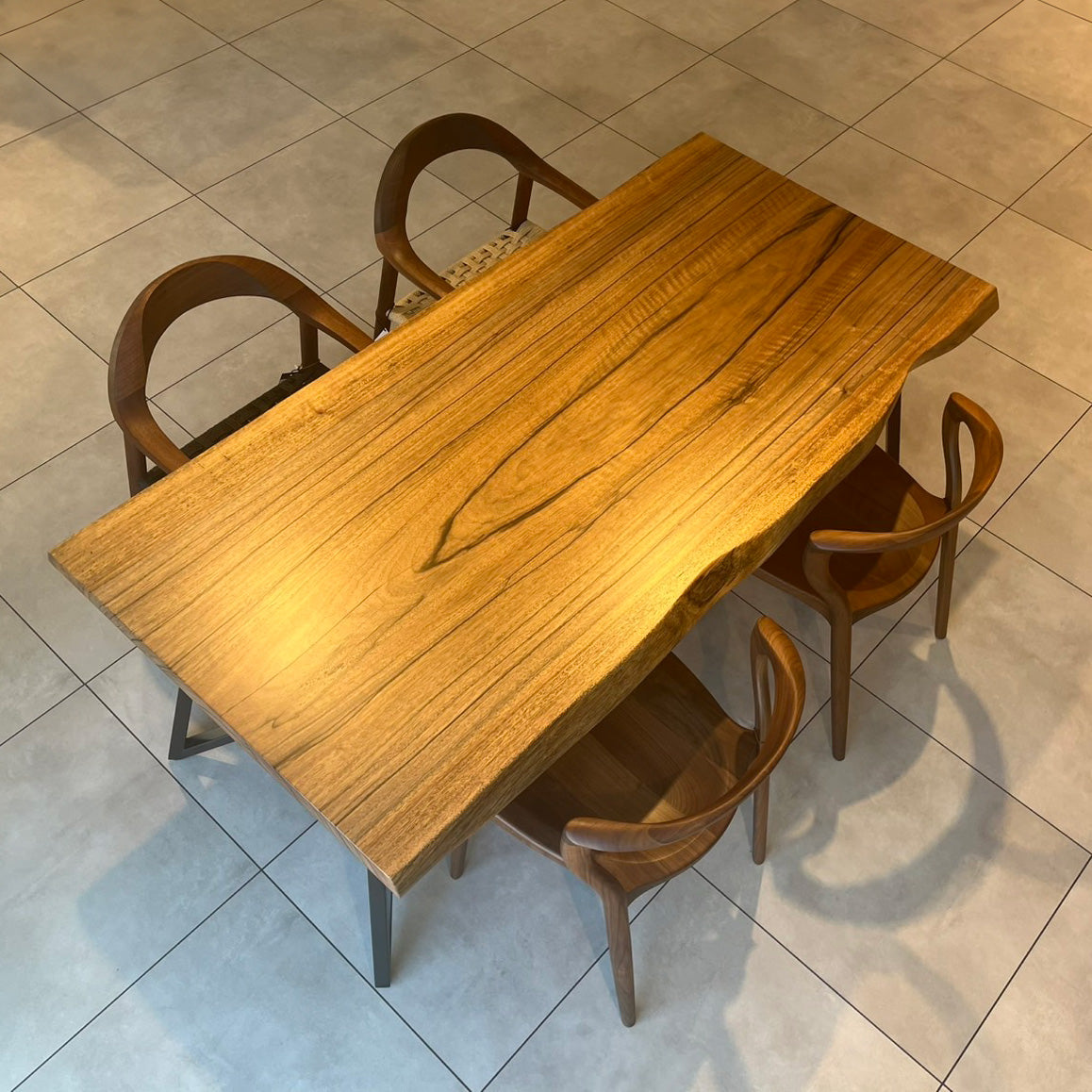 木には人と同じように個性があります。樹種や産地、樹齢はもちろん、同じ丸太から製材した一枚板でも同じものはひとつとしてありません。同じ名前の木でも色の明るいもの、暗いもの、節があるもの、傷があるものなど様々です。それは木が長い年月を過ごしてきた証であり、木が持つ個性です。だからこそ一枚板は‘世界にひとつのモノ’になるのです。