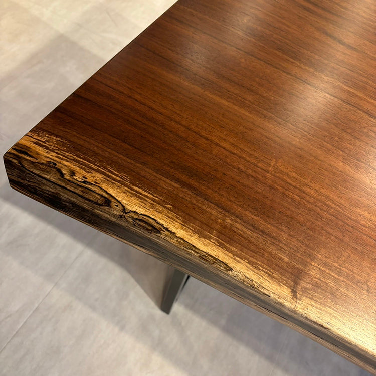 木には人と同じように個性があります。樹種や産地、樹齢はもちろん、同じ丸太から製材した一枚板でも同じものはひとつとしてありません。同じ名前の木でも色の明るいもの、暗いもの、節があるもの、傷があるものなど様々です。それは木が長い年月を過ごしてきた証であり、木が持つ個性です。だからこそ一枚板は‘世界にひとつのモノ’になるのです。
