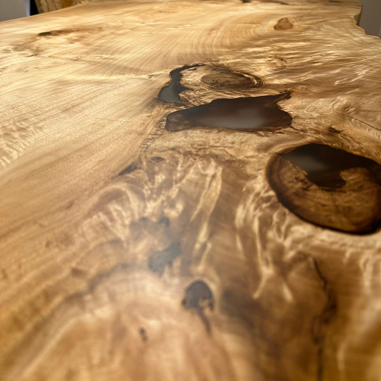 木には人と同じように個性があります。樹種や産地、樹齢はもちろん、同じ丸太から製材した一枚板でも同じものはひとつとしてありません。同じ名前の木でも色の明るいもの、暗いもの、節があるもの、傷があるものなど様々です。それは木が長い年月を過ごしてきた証であり、木が持つ個性です。だからこそ一枚板は‘世界にひとつのモノ’になるのです。