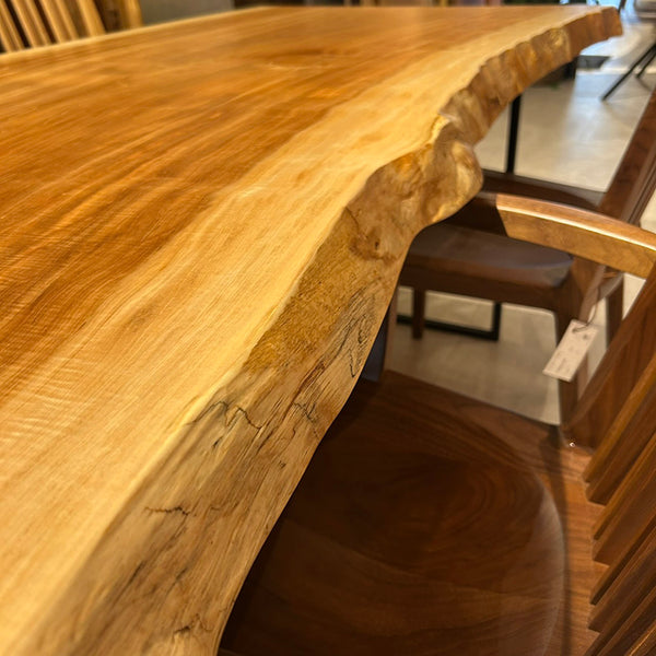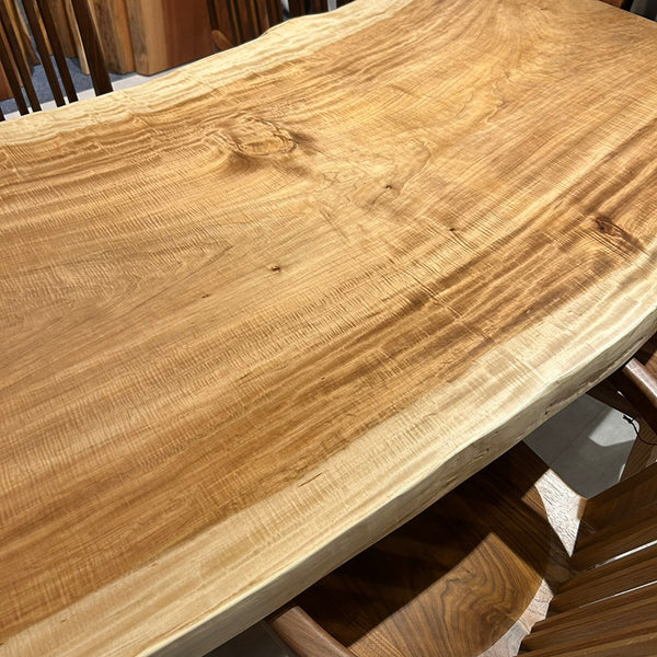 木には人と同じように個性があります。樹種や産地、樹齢はもちろん、同じ丸太から製材した一枚板でも同じものはひとつとしてありません。同じ名前の木でも色の明るいもの、暗いもの、節があるもの、傷があるものなど様々です。それは木が長い年月を過ごしてきた証であり、木が持つ個性です。だからこそ一枚板は‘世界にひとつのモノ’になるのです。
