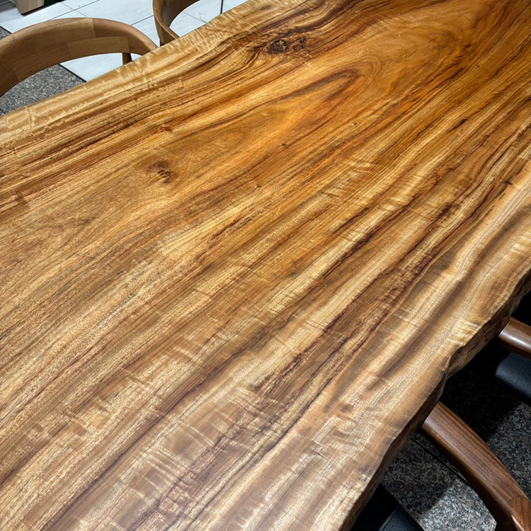 木には人と同じように個性があります。樹種や産地、樹齢はもちろん、同じ丸太から製材した一枚板でも同じものはひとつとしてありません。同じ名前の木でも色の明るいもの、暗いもの、節があるもの、傷があるものなど様々です。それは木が長い年月を過ごしてきた証であり、木が持つ個性です。だからこそ一枚板は‘世界にひとつのモノ’になるのです。