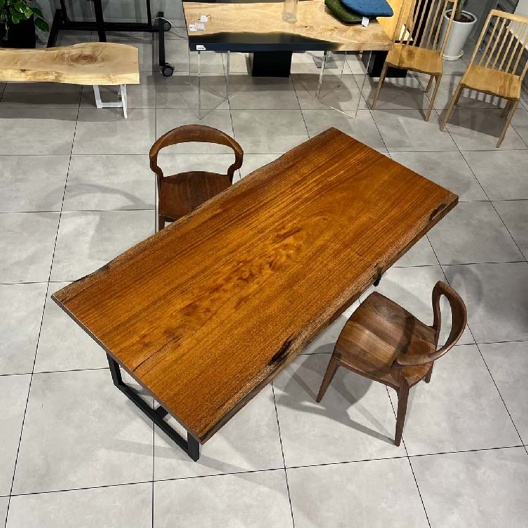 木には人と同じように個性があります。樹種や産地、樹齢はもちろん、同じ丸太から製材した一枚板でも同じものはひとつとしてありません。同じ名前の木でも色の明るいもの、暗いもの、節があるもの、傷があるものなど様々です。それは木が長い年月を過ごしてきた証であり、木が持つ個性です。だからこそ一枚板は‘世界にひとつのモノ’になるのです。