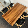 樹脂膜が水や汚れから木を保護してくれますので、日頃のお手入れは乾拭きや水拭きのみで済み、非常に楽にお使いいただける点が特徴です。特に飲食が主な用途になるダイニングテーブルでは、その効果を特に発揮します。