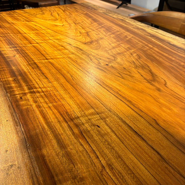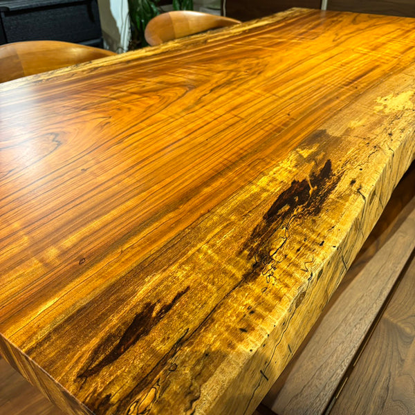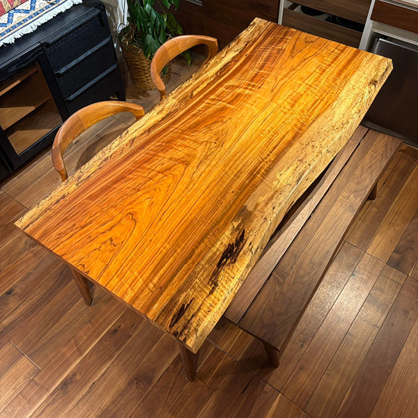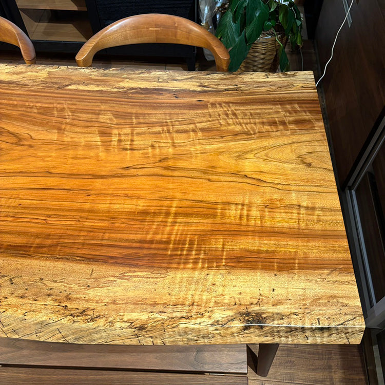 木には人と同じように個性があります。樹種や産地、樹齢はもちろん、同じ丸太から製材した一枚板でも同じものはひとつとしてありません。同じ名前の木でも色の明るいもの、暗いもの、節があるもの、傷があるものなど様々です。それは木が長い年月を過ごしてきた証であり、木が持つ個性です。だからこそ一枚板は‘世界にひとつのモノ’になるのです。