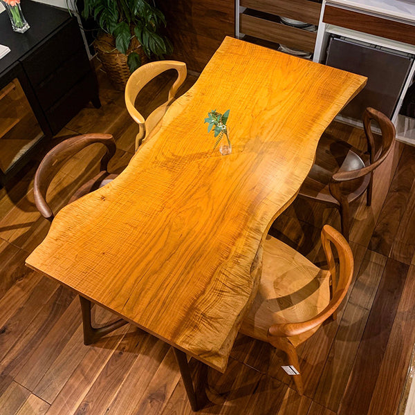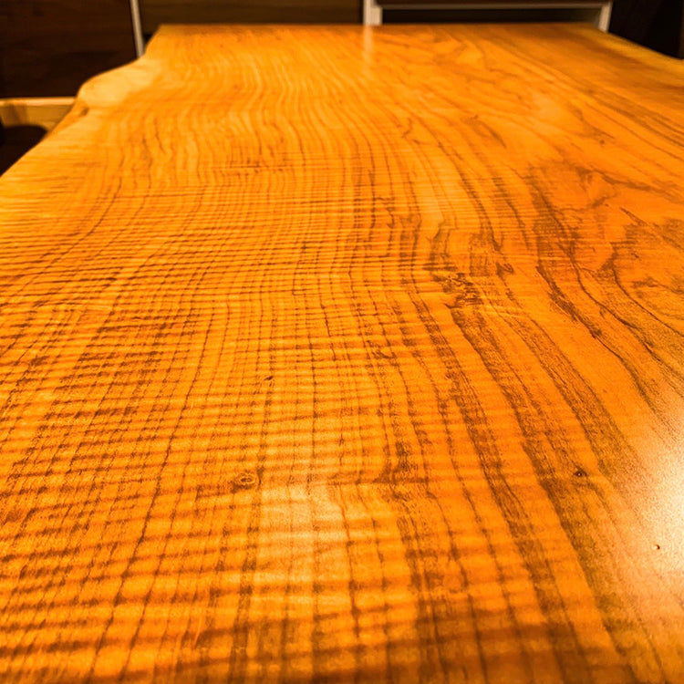 木には人と同じように個性があります。樹種や産地、樹齢はもちろん、同じ丸太から製材した一枚板でも同じものはひとつとしてありません。同じ名前の木でも色の明るいもの、暗いもの、節があるもの、傷があるものなど様々です。それは木が長い年月を過ごしてきた証であり、木が持つ個性です。だからこそ一枚板は‘世界にひとつのモノ’になるのです。