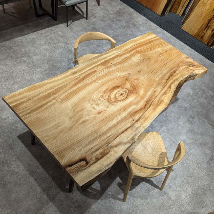 木には人と同じように個性があります。樹種や産地、樹齢はもちろん、同じ丸太から製材した一枚板でも同じものはひとつとしてありません。同じ名前の木でも色の明るいもの、暗いもの、節があるもの、傷があるものなど様々です。それは木が長い年月を過ごしてきた証であり、木が持つ個性です。だからこそ一枚板は‘世界にひとつのモノ’になるのです。