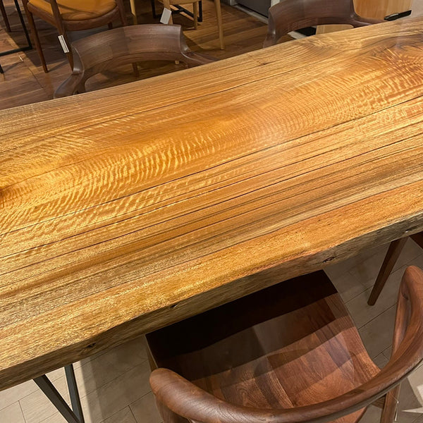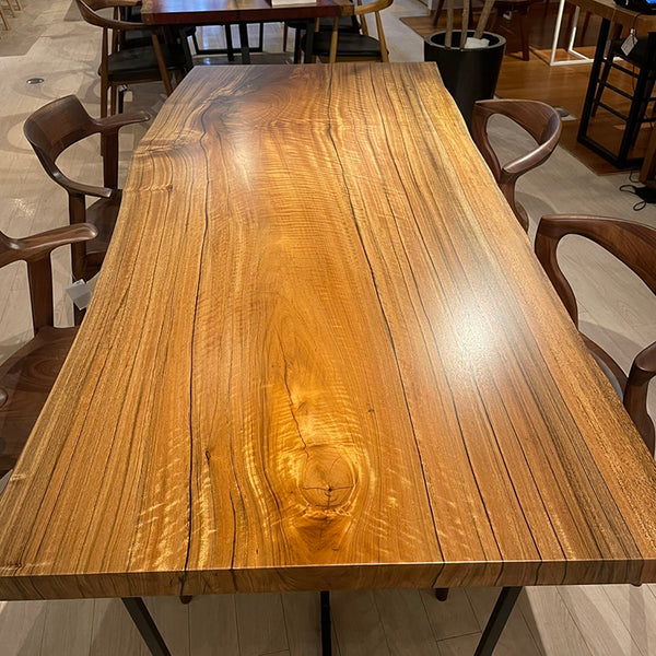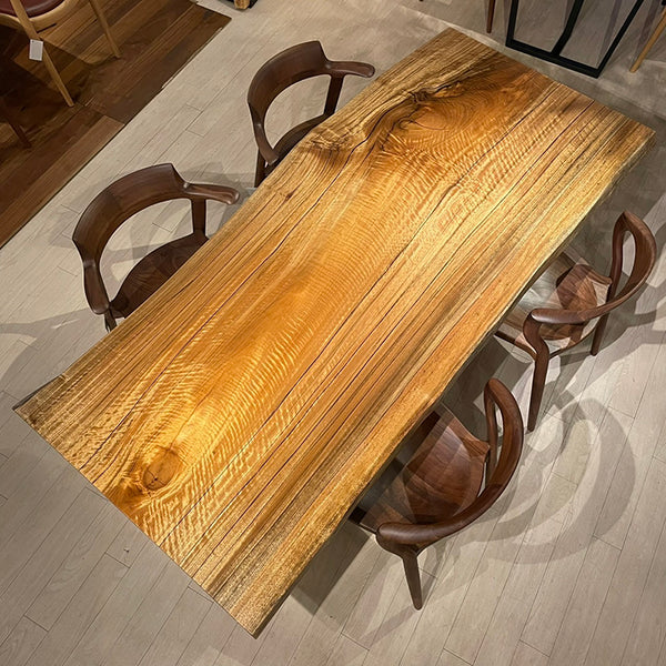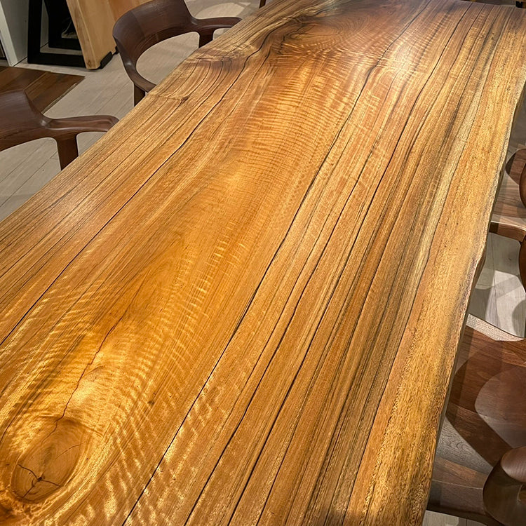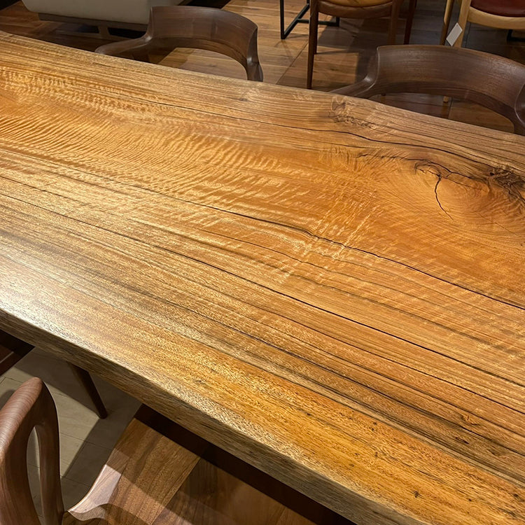 木には人と同じように個性があります。樹種や産地、樹齢はもちろん、同じ丸太から製材した一枚板でも同じものはひとつとしてありません。同じ名前の木でも色の明るいもの、暗いもの、節があるもの、傷があるものなど様々です。それは木が長い年月を過ごしてきた証であり、木が持つ個性です。だからこそ一枚板は‘世界にひとつのモノ’になるのです。