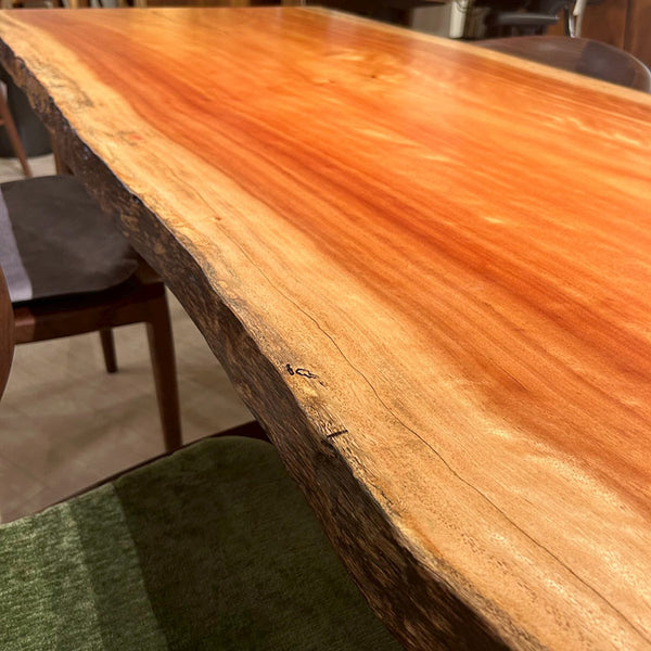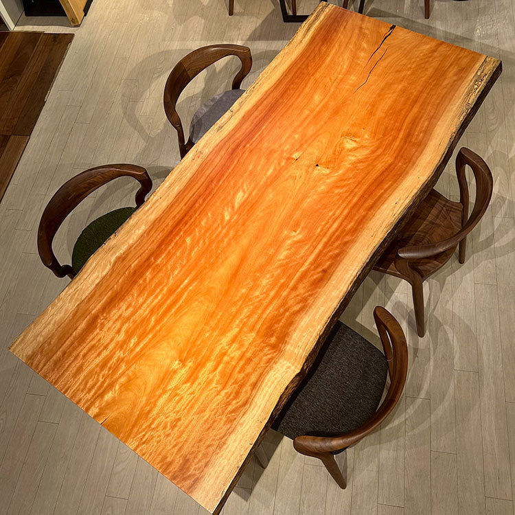 木には人と同じように個性があります。樹種や産地、樹齢はもちろん、同じ丸太から製材した一枚板でも同じものはひとつとしてありません。同じ名前の木でも色の明るいもの、暗いもの、節があるもの、傷があるものなど様々です。それは木が長い年月を過ごしてきた証であり、木が持つ個性です。だからこそ一枚板は‘世界にひとつのモノ’になるのです。
