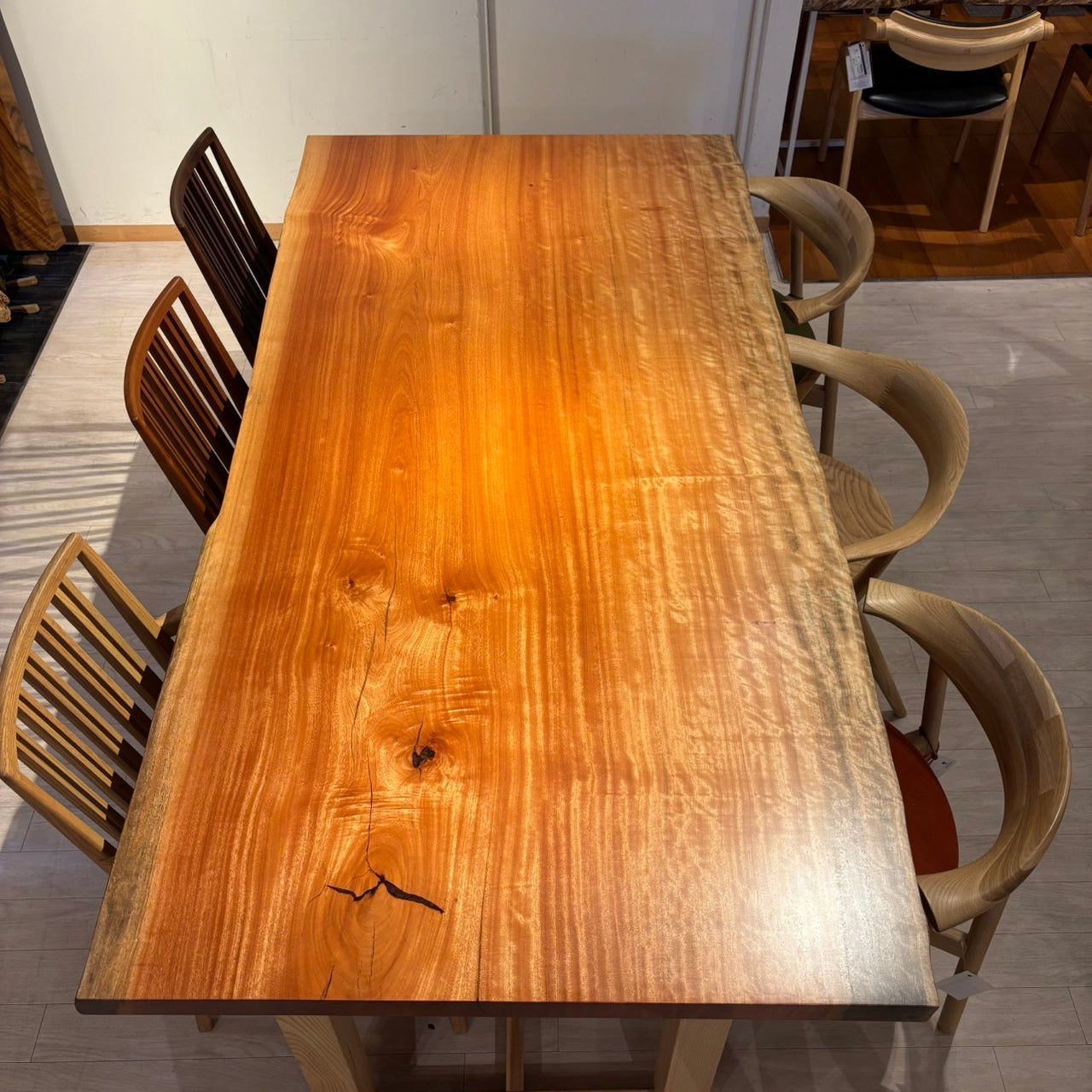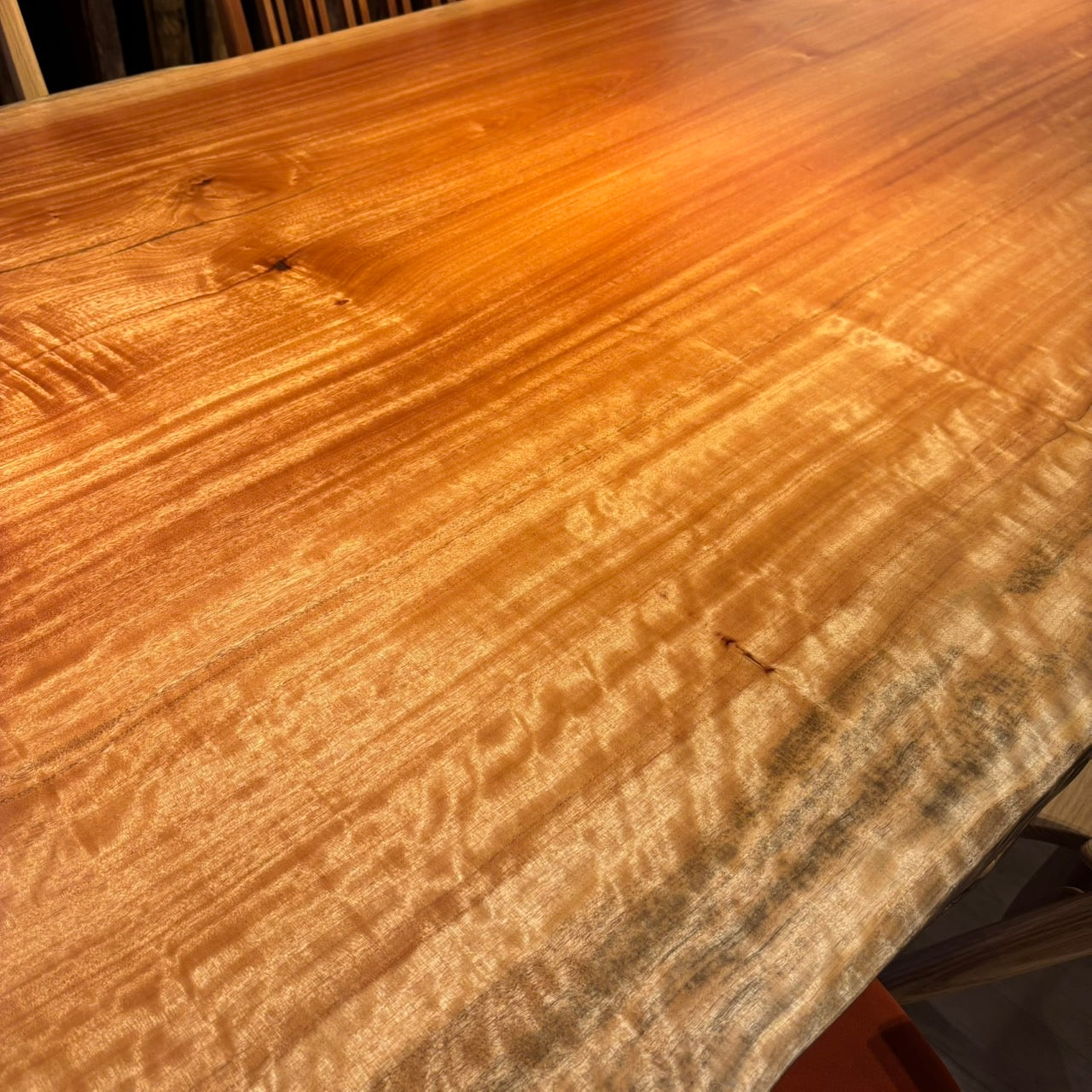 木には人と同じように個性があります。樹種や産地、樹齢はもちろん、同じ丸太から製材した一枚板でも同じものはひとつとしてありません。同じ名前の木でも色の明るいもの、暗いもの、節があるもの、傷があるものなど様々です。それは木が長い年月を過ごしてきた証であり、木が持つ個性です。だからこそ一枚板は‘世界にひとつのモノ’になるのです。