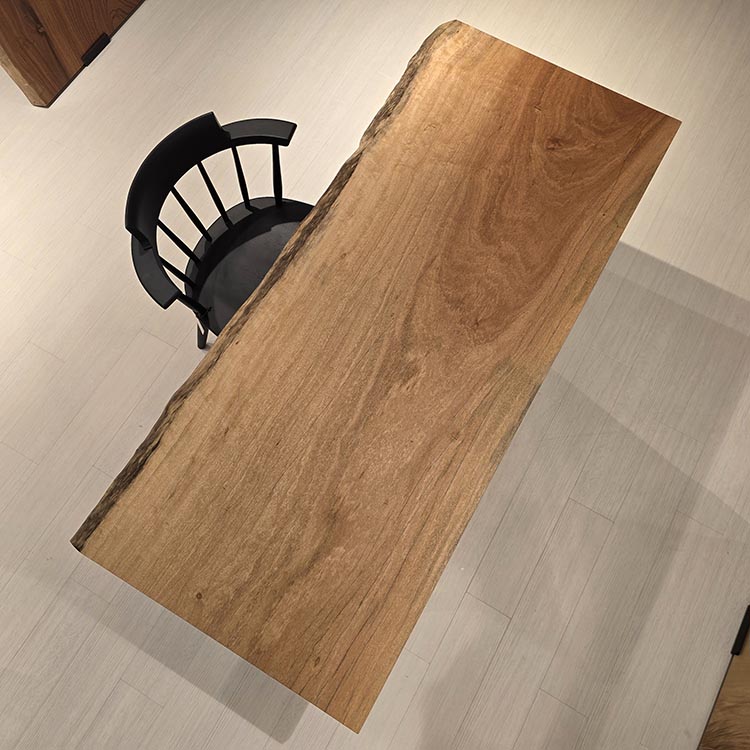 木には人と同じように個性があります。樹種や産地、樹齢はもちろん、同じ丸太から製材した一枚板でも同じものはひとつとしてありません。同じ名前の木でも色の明るいもの、暗いもの、節があるもの、傷があるものなど様々です。それは木が長い年月を過ごしてきた証であり、木が持つ個性です。だからこそ一枚板は‘世界にひとつのモノ’になるのです。