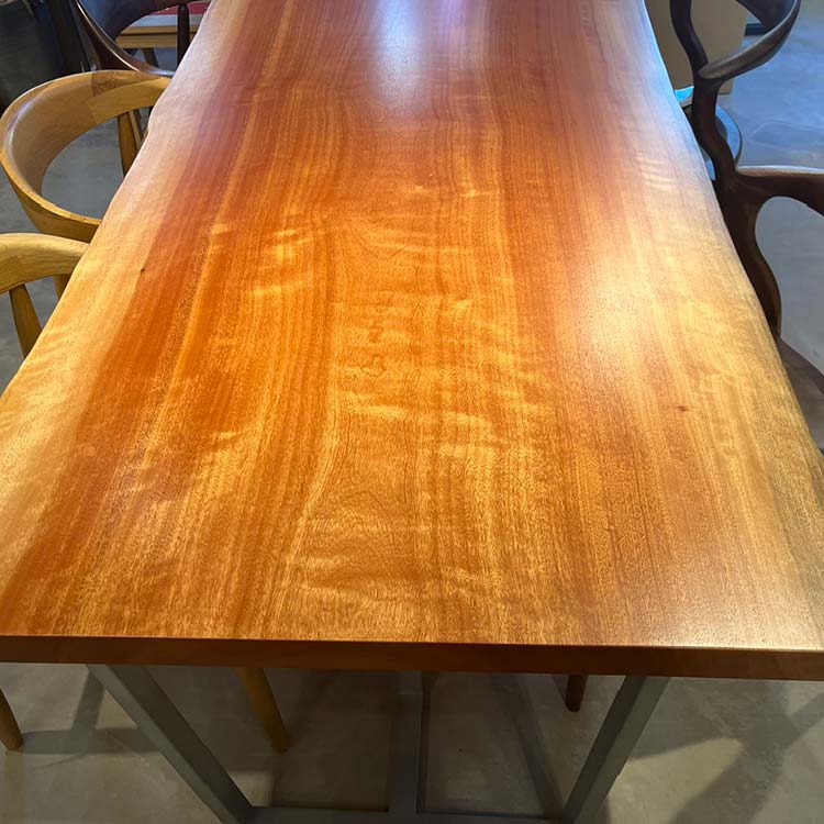 木には人と同じように個性があります。樹種や産地、樹齢はもちろん、同じ丸太から製材した一枚板でも同じものはひとつとしてありません。同じ名前の木でも色の明るいもの、暗いもの、節があるもの、傷があるものなど様々です。それは木が長い年月を過ごしてきた証であり、木が持つ個性です。だからこそ一枚板は‘世界にひとつのモノ’になるのです。