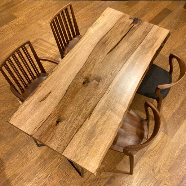 木には人と同じように個性があります。樹種や産地、樹齢はもちろん、同じ丸太から製材した一枚板でも同じものはひとつとしてありません。同じ名前の木でも色の明るいもの、暗いもの、節があるもの、傷があるものなど様々です。それは木が長い年月を過ごしてきた証であり、木が持つ個性です。だからこそ一枚板は‘世界にひとつのモノ’になるのです。