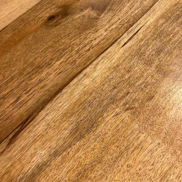 樹脂膜が水や汚れから木を保護してくれますので、日頃のお手入れは乾拭きや水拭きのみで済み、非常に楽にお使いいただける点が特徴です。特に飲食が主な用途になるダイニングテーブルでは、その効果を特に発揮します。
