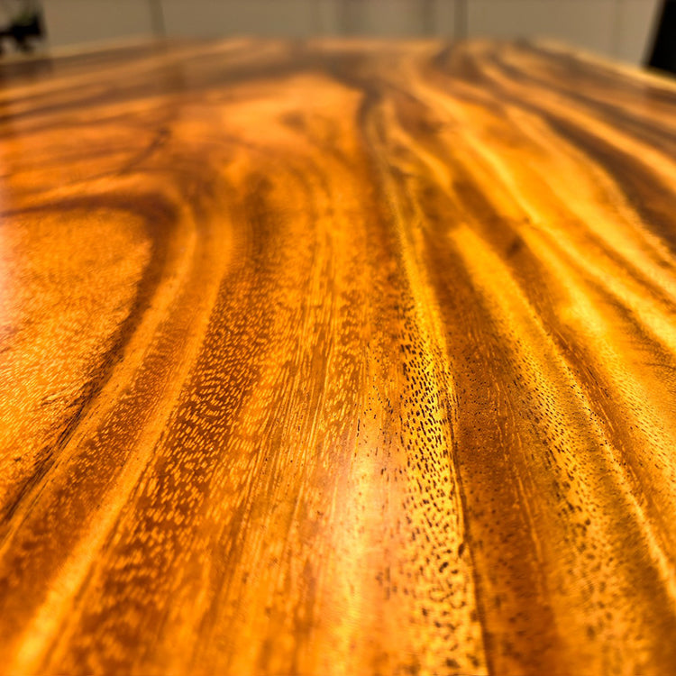 木には人と同じように個性があります。樹種や産地、樹齢はもちろん、同じ丸太から製材した一枚板でも同じものはひとつとしてありません。同じ名前の木でも色の明るいもの、暗いもの、節があるもの、傷があるものなど様々です。それは木が長い年月を過ごしてきた証であり、木が持つ個性です。だからこそ一枚板は‘世界にひとつのモノ’になるのです。