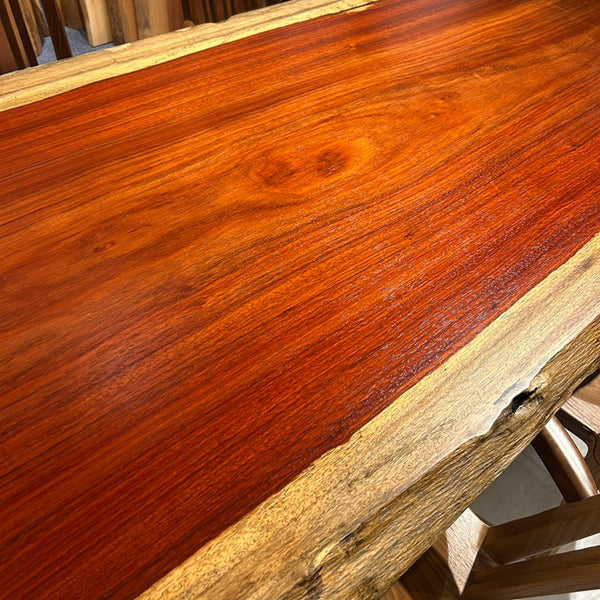 木には人と同じように個性があります。樹種や産地、樹齢はもちろん、同じ丸太から製材した一枚板でも同じものはひとつとしてありません。同じ名前の木でも色の明るいもの、暗いもの、節があるもの、傷があるものなど様々です。それは木が長い年月を過ごしてきた証であり、木が持つ個性です。だからこそ一枚板は‘世界にひとつのモノ’になるのです。