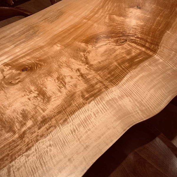 木には人と同じように個性があります。樹種や産地、樹齢はもちろん、同じ丸太から製材した一枚板でも同じものはひとつとしてありません。同じ名前の木でも色の明るいもの、暗いもの、節があるもの、傷があるものなど様々です。それは木が長い年月を過ごしてきた証であり、木が持つ個性です。だからこそ一枚板は‘世界にひとつのモノ’になるのです。