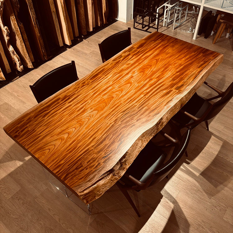 木には人と同じように個性があります。樹種や産地、樹齢はもちろん、同じ丸太から製材した一枚板でも同じものはひとつとしてありません。同じ名前の木でも色の明るいもの、暗いもの、節があるもの、傷があるものなど様々です。それは木が長い年月を過ごしてきた証であり、木が持つ個性です。だからこそ一枚板は‘世界にひとつのモノ’になるのです。