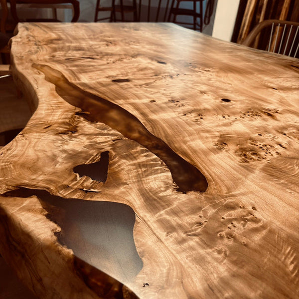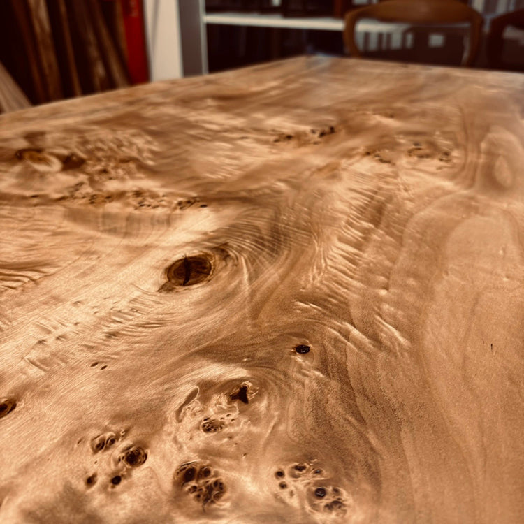 木には人と同じように個性があります。樹種や産地、樹齢はもちろん、同じ丸太から製材した一枚板でも同じものはひとつとしてありません。同じ名前の木でも色の明るいもの、暗いもの、節があるもの、傷があるものなど様々です。それは木が長い年月を過ごしてきた証であり、木が持つ個性です。だからこそ一枚板は‘世界にひとつのモノ’になるのです。