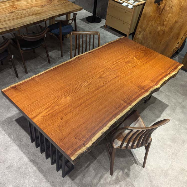 木には人と同じように個性があります。樹種や産地、樹齢はもちろん、同じ丸太から製材した一枚板でも同じものはひとつとしてありません。同じ名前の木でも色の明るいもの、暗いもの、節があるもの、傷があるものなど様々です。それは木が長い年月を過ごしてきた証であり、木が持つ個性です。だからこそ一枚板は‘世界にひとつのモノ’になるのです。