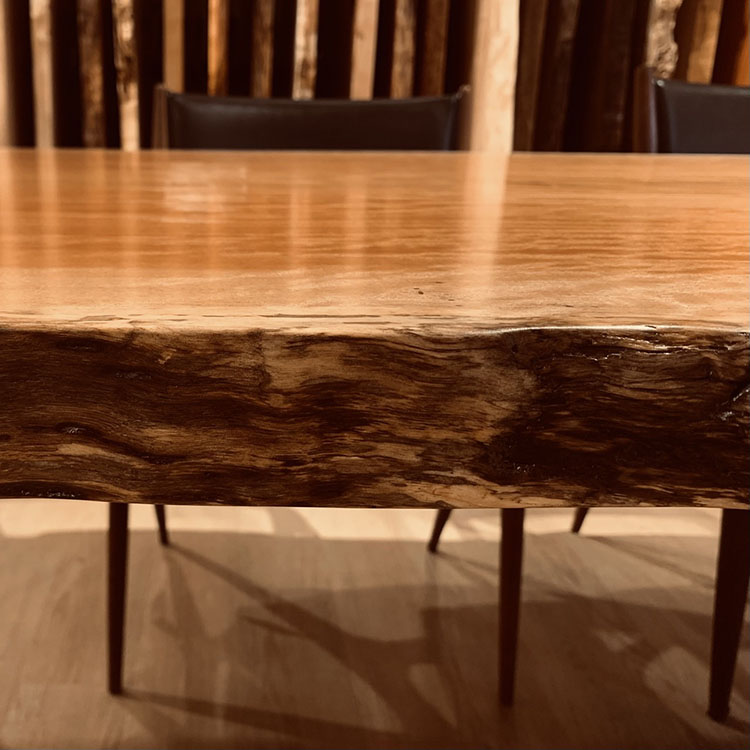 木には人と同じように個性があります。樹種や産地、樹齢はもちろん、同じ丸太から製材した一枚板でも同じものはひとつとしてありません。同じ名前の木でも色の明るいもの、暗いもの、節があるもの、傷があるものなど様々です。それは木が長い年月を過ごしてきた証であり、木が持つ個性です。だからこそ一枚板は‘世界にひとつのモノ’になるのです。