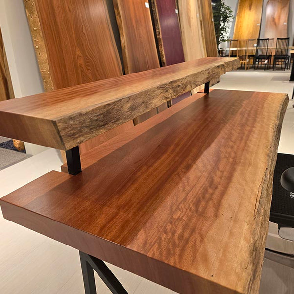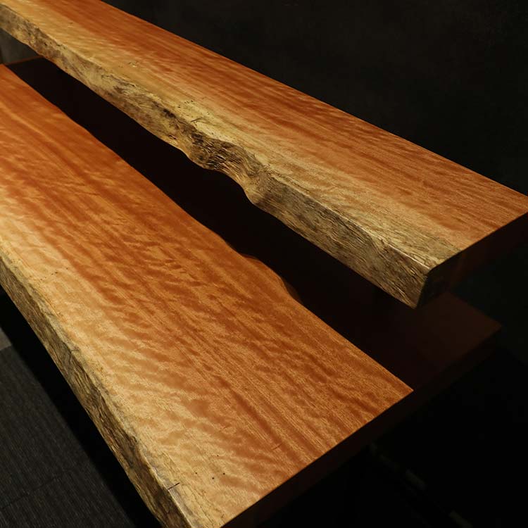 木には人と同じように個性があります。樹種や産地、樹齢はもちろん、同じ丸太から製材した一枚板でも同じものはひとつとしてありません。同じ名前の木でも色の明るいもの、暗いもの、節があるもの、傷があるものなど様々です。それは木が長い年月を過ごしてきた証であり、木が持つ個性です。だからこそ一枚板は‘世界にひとつのモノ’になるのです。