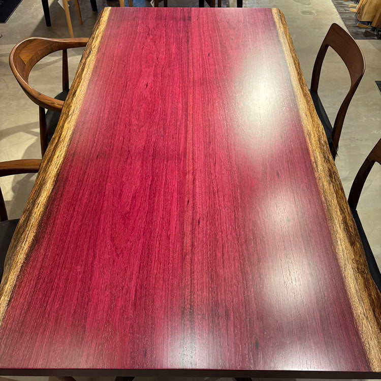 木には人と同じように個性があります。樹種や産地、樹齢はもちろん、同じ丸太から製材した一枚板でも同じものはひとつとしてありません。同じ名前の木でも色の明るいもの、暗いもの、節があるもの、傷があるものなど様々です。それは木が長い年月を過ごしてきた証であり、木が持つ個性です。だからこそ一枚板は‘世界にひとつのモノ’になるのです。