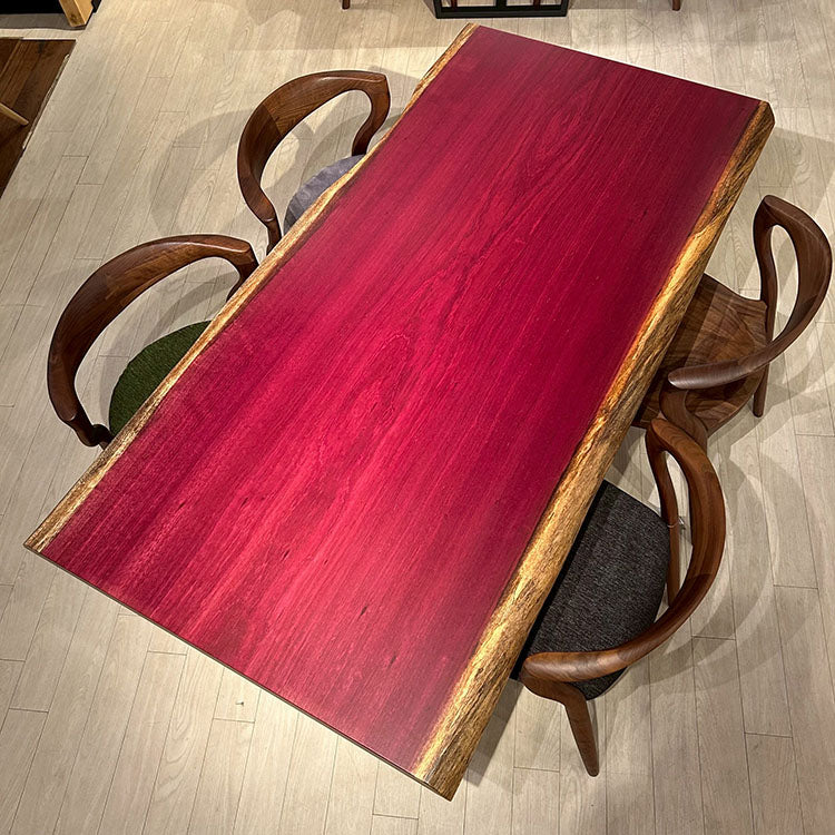 木には人と同じように個性があります。樹種や産地、樹齢はもちろん、同じ丸太から製材した一枚板でも同じものはひとつとしてありません。同じ名前の木でも色の明るいもの、暗いもの、節があるもの、傷があるものなど様々です。それは木が長い年月を過ごしてきた証であり、木が持つ個性です。だからこそ一枚板は‘世界にひとつのモノ’になるのです。